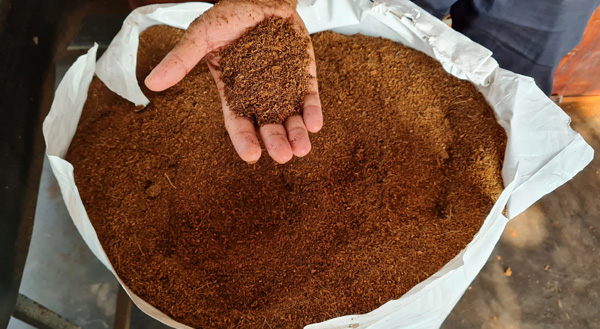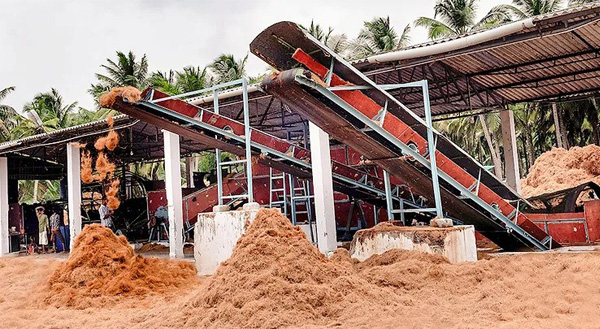Using the Coir Beater, the pith and fiber are separated from the coconut husk pieces. Fresh coconut pith is then extracted by the machine’s outlet conveyor.